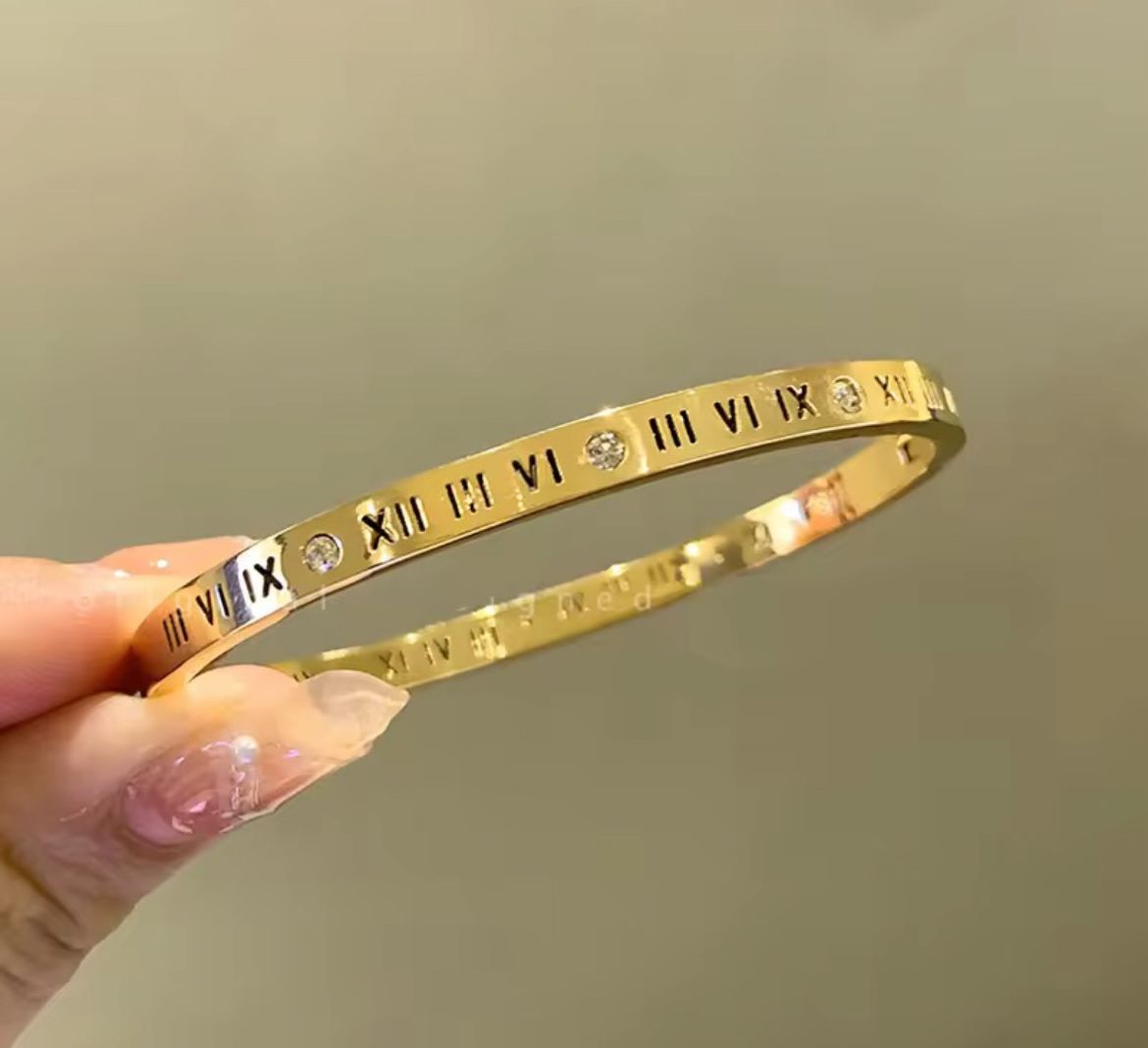 Be the first to review “Stainless Steel Tarnish free Gold Plated Roman Numerals Bracelet”